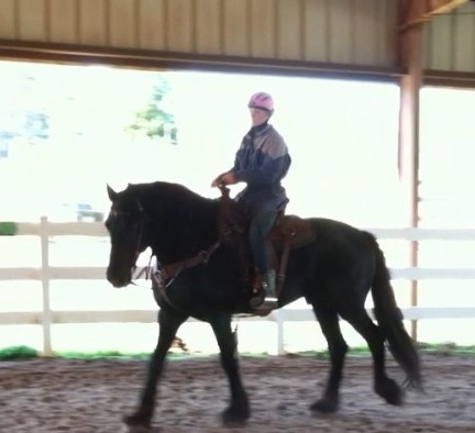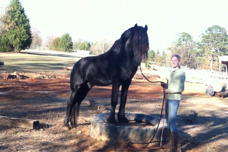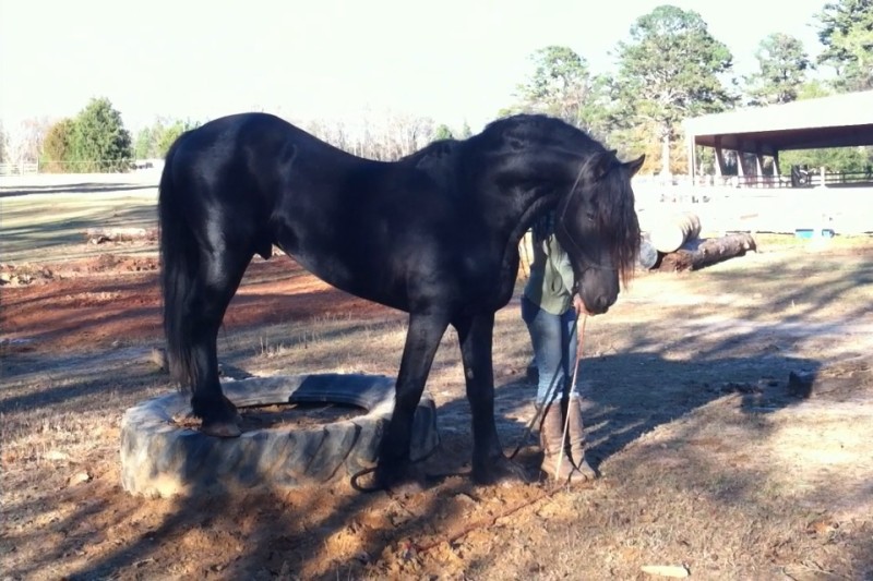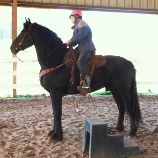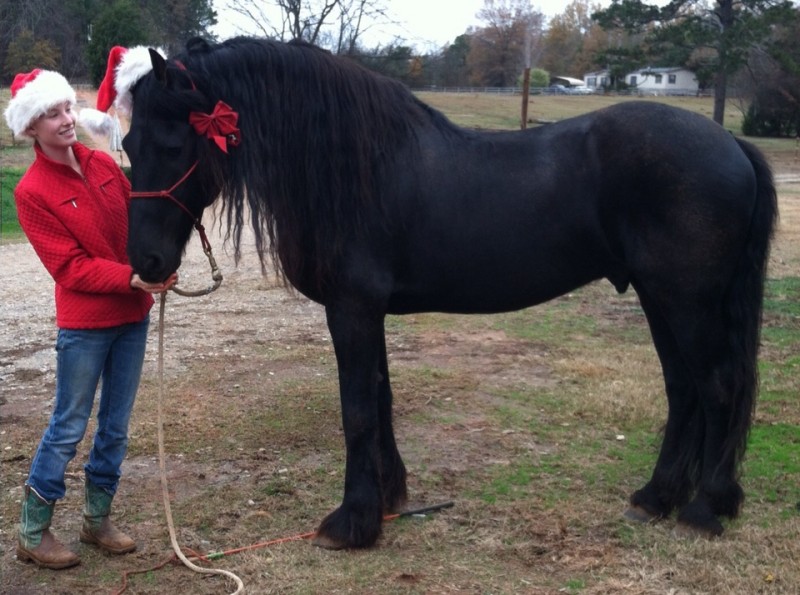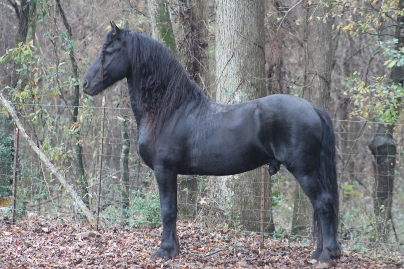 He has excellent conformation with tons of mane and feathers, great movement and a super-friendly personality.